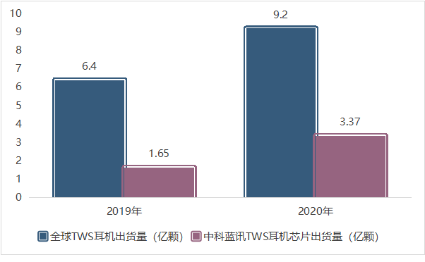 企业的高增长一定离不开行业的高增长。在整个全球无线耳机芯片行业,旭日大数据显示, 2019 年-2020 年全球的出货量分别为 6.4 亿颗和 9.2 亿颗,而中科蓝讯这两年的出货量为 1.65 亿颗、3.37 亿颗。这意味着,其市占率分别达到了 25.78%、36.63%。