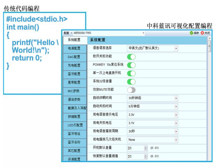 不仅如此,使用 RISC-V 设计的芯片延展性相对较好,支持各种应用场景的 SDK, 提供可视化配置界面 , 方便了中科蓝讯的客户(也就是白牌厂商)做二次开发。
