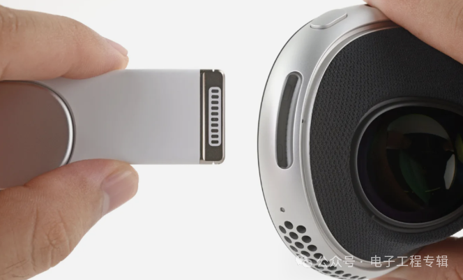 这样算起来,Vision Pro上共有三种接口!Vision Pro电源的Lightning数据线拥有12针脚、扬声器的Lightning接口拥有10针脚……多少有点复杂了。