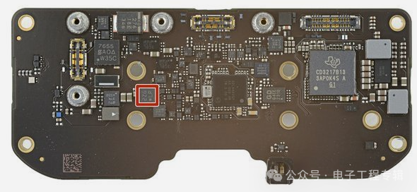 芯片方面,在Vision Pro主机及配套的扬声器及外接电源当中,除了苹果的自研的处理器芯片之外,还有多颗苹果自研的电源管理芯片,以及大量的德州仪器的芯片,数量达到了17颗之多。令人意外的是,Vision Pro上还有一颗国产存储芯片厂商兆易创新的NorFlash芯片。
