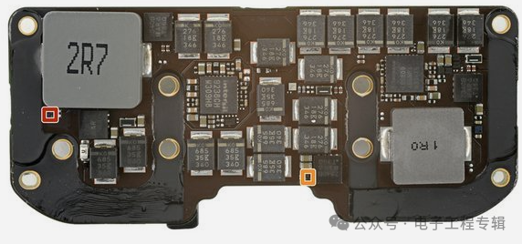 在看完了Vision Pro主机内部的主板芯片之后,iFixit还对于Vision Pro的外接电源内部的主板进行了分析。