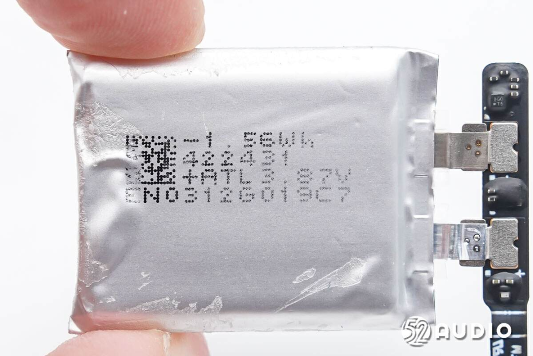 手表内置可充电锂离子电池组,内部电芯型号:422431,容量:1.56Wh,电压:3.87V,来自ATL东莞新能源。